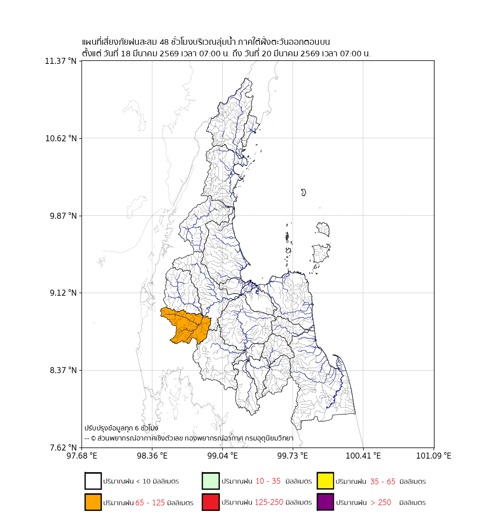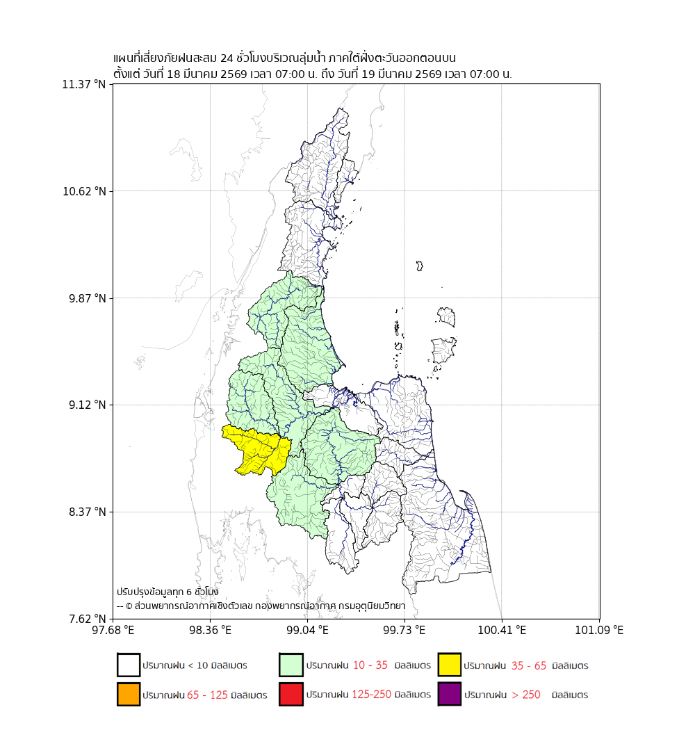 แผนที่เสี่ยงภัยปริมาณฝนสะสมbr>ตั้งแต่วันที่ 18 มี.ค. 2569 เวลา 07:00 น.