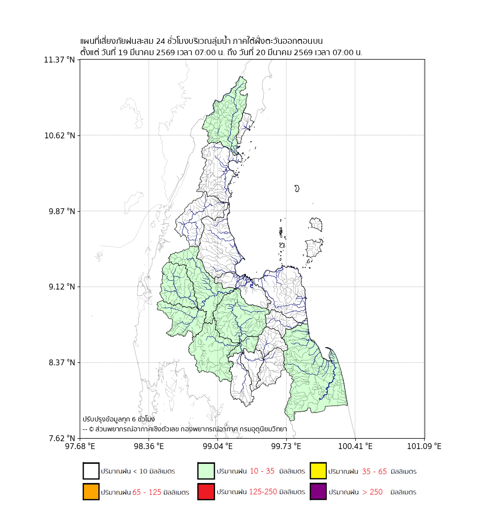 แผนที่เสี่ยงภัยปริมาณฝนสะสมbr>ตั้งแต่วันที่ 19 มี.ค. 2569 เวลา 07:00 น.
