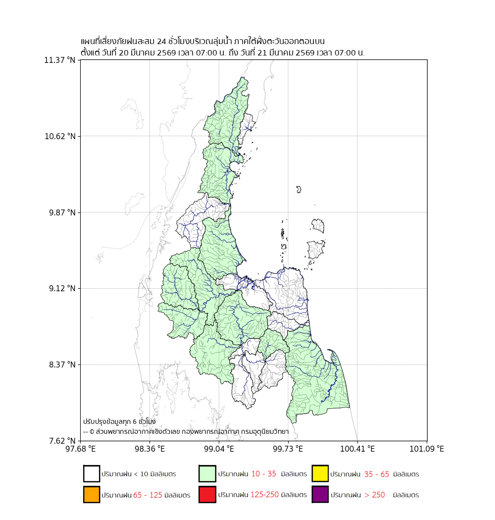 แผนที่เสี่ยงภัยปริมาณฝนสะสมbr>ตั้งแต่วันที่ 20 มี.ค. 2569 เวลา 07:00 น.