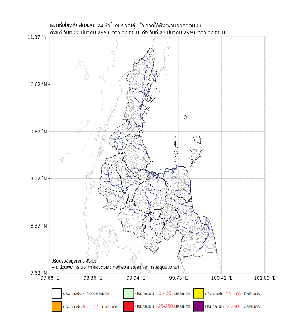 แผนที่เสี่ยงภัยปริมาณฝนสะสมbr>ตั้งแต่วันที่ 22 มี.ค. 2569 เวลา 07:00 น.