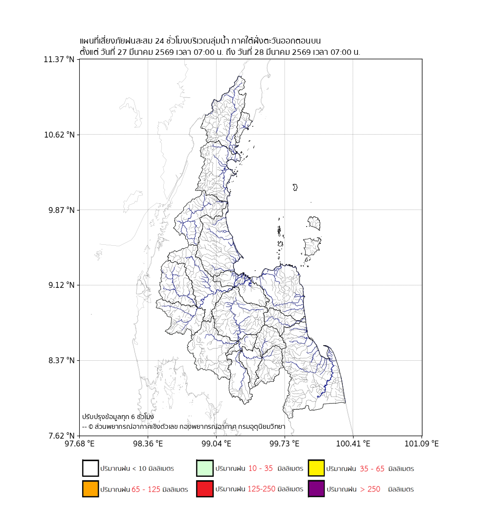 แผนที่เสี่ยงภัยปริมาณฝนสะสมbr>ตั้งแต่วันที่ 27 มี.ค. 2569 เวลา 07:00 น.