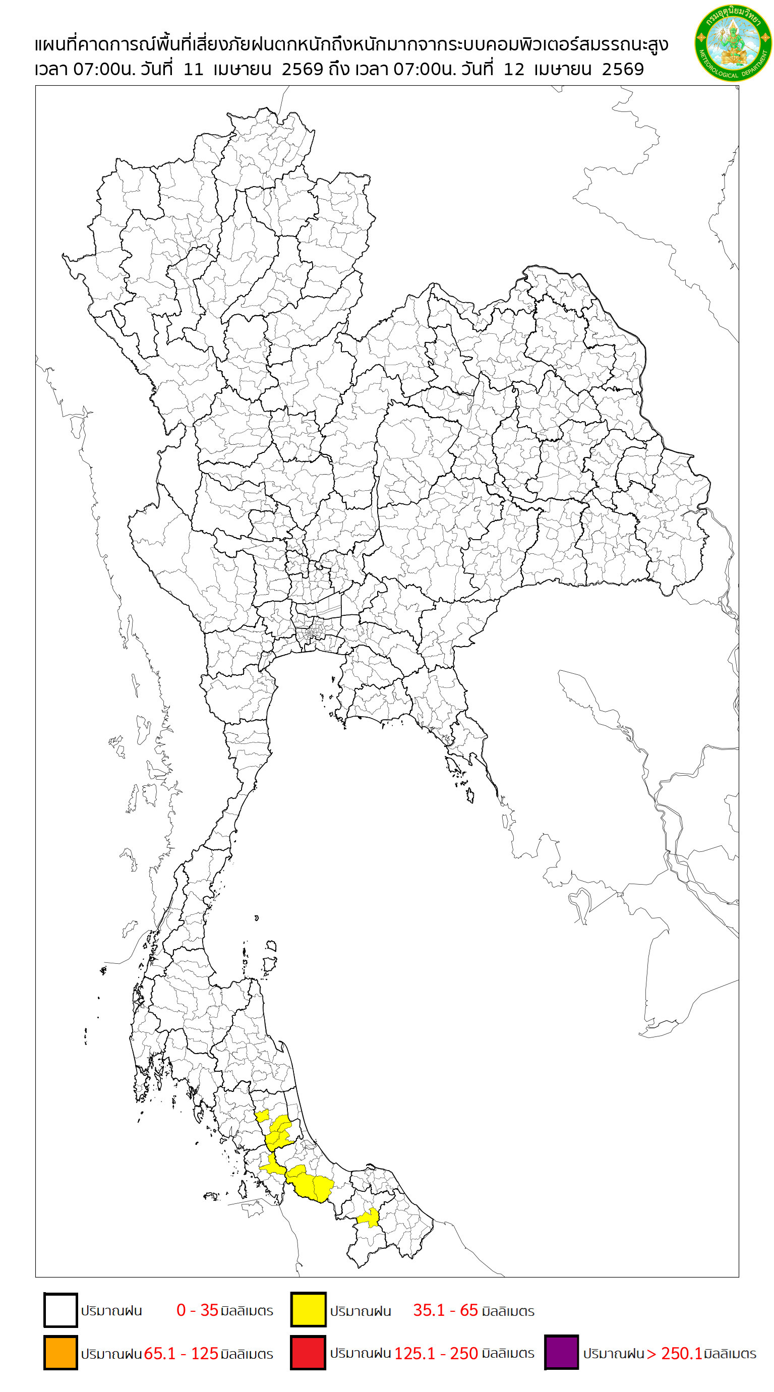 ของปริมาณฝนสูงสุดที่เป็นไปได้ในพื้นที่อำเภอ ที่เกิดจากการคำนวนของแบบจำลองอากาศเชิงตัวเลข หน่วยเป็นมิลลิเมตร